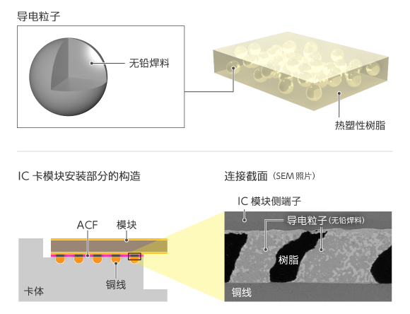经过优化的异方性导电膜 (ACF),可嵌入到接触型/非接触型IC卡的双接口和指纹传感器等功能模块