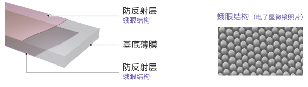 在薄膜上构成蛾眼结构的蛾眼型防反射薄膜本是作为电子工学领域中的屏幕防反射技术研发的,Dexerials则将其用作医用护目镜材料。
