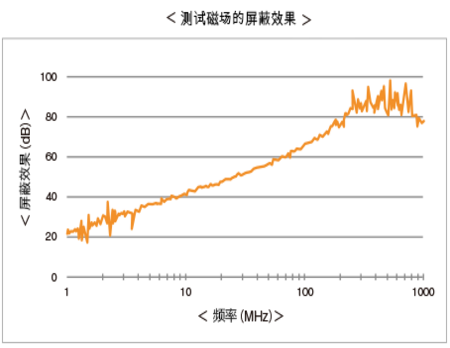测试方法:利用电磁波屏蔽效果测试装置(KEC法)测试磁场、电场的屏蔽效果。