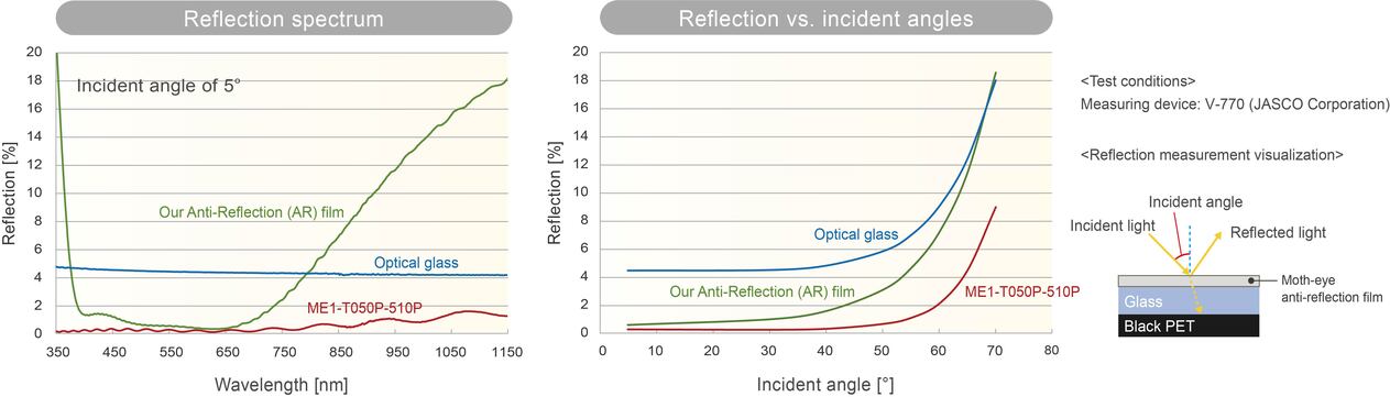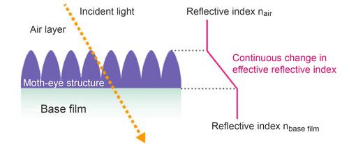 - The moth-eye surface structure ensures low reflection and high transmittance in a wide range of wavelength bands from visible light to near-infrared light.