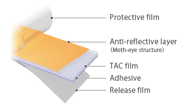 This anti-reflection film features a nano-level moth-eye structure formed on the surface.