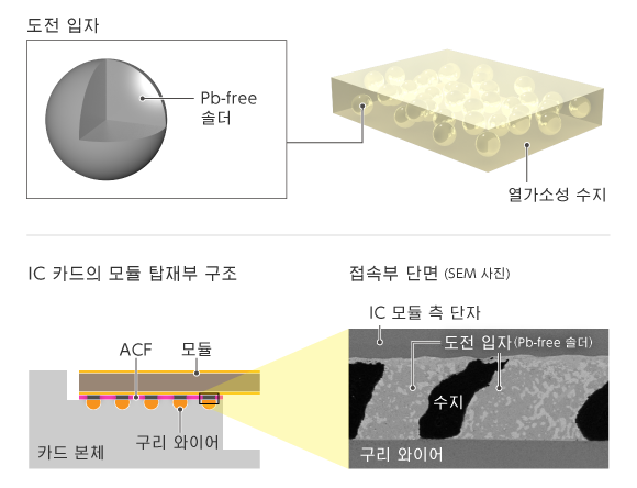 접촉형/비접촉형 IC 카드로의 듀얼 인터페이스나 지문 센서 등 기능 모듈 내장에 최적화된 이방성 도전막(ACF)