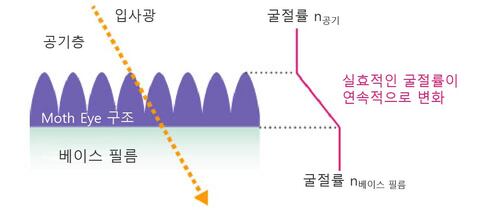 Moth Eye형 필름은 Moth Eye 구조의 특성상 부착된 오물을 완전히 제거하기가 힘들기 때문에 사람의 손이 닿는 곳이나 오염되기 쉬운 곳에서의 사용은 권장하지 않습니다.