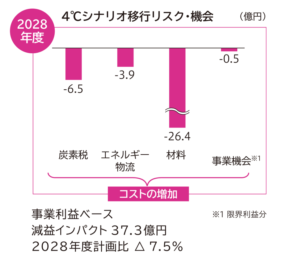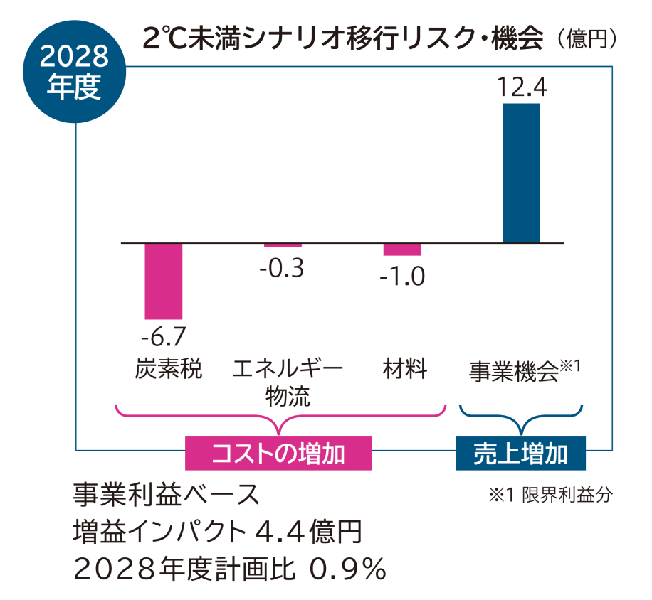 これらの移行リスク・機会への対応策については、当社グループの生産・事業部門と組織横断的な議論を重ねつつ、今後の取り組みにつなげる予定です。