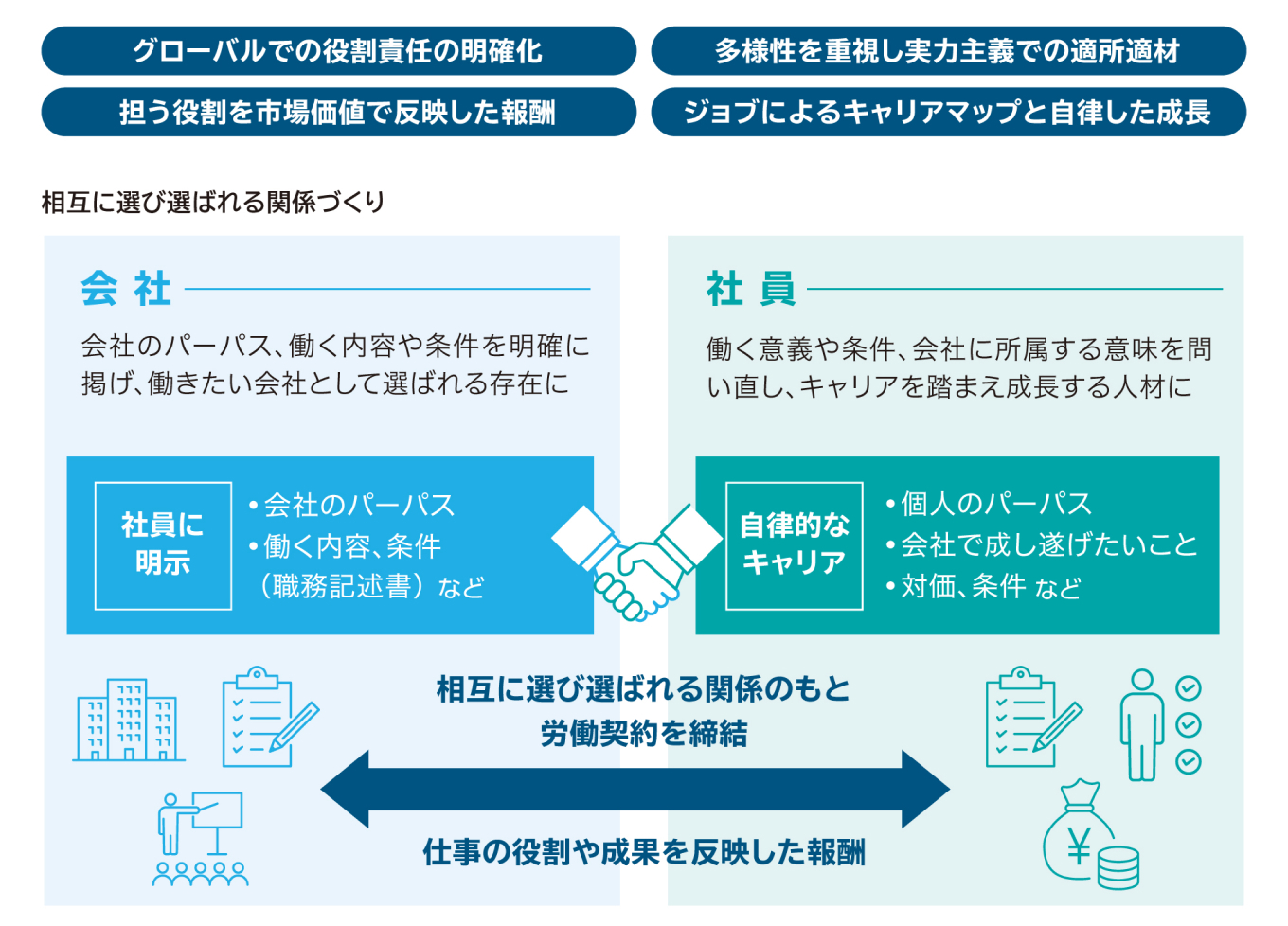 当社グループでは、人的資本戦略を推進する基盤として、2024年度よりグローバルの標準であるジョブ型人事制度を全面的に導入しました。