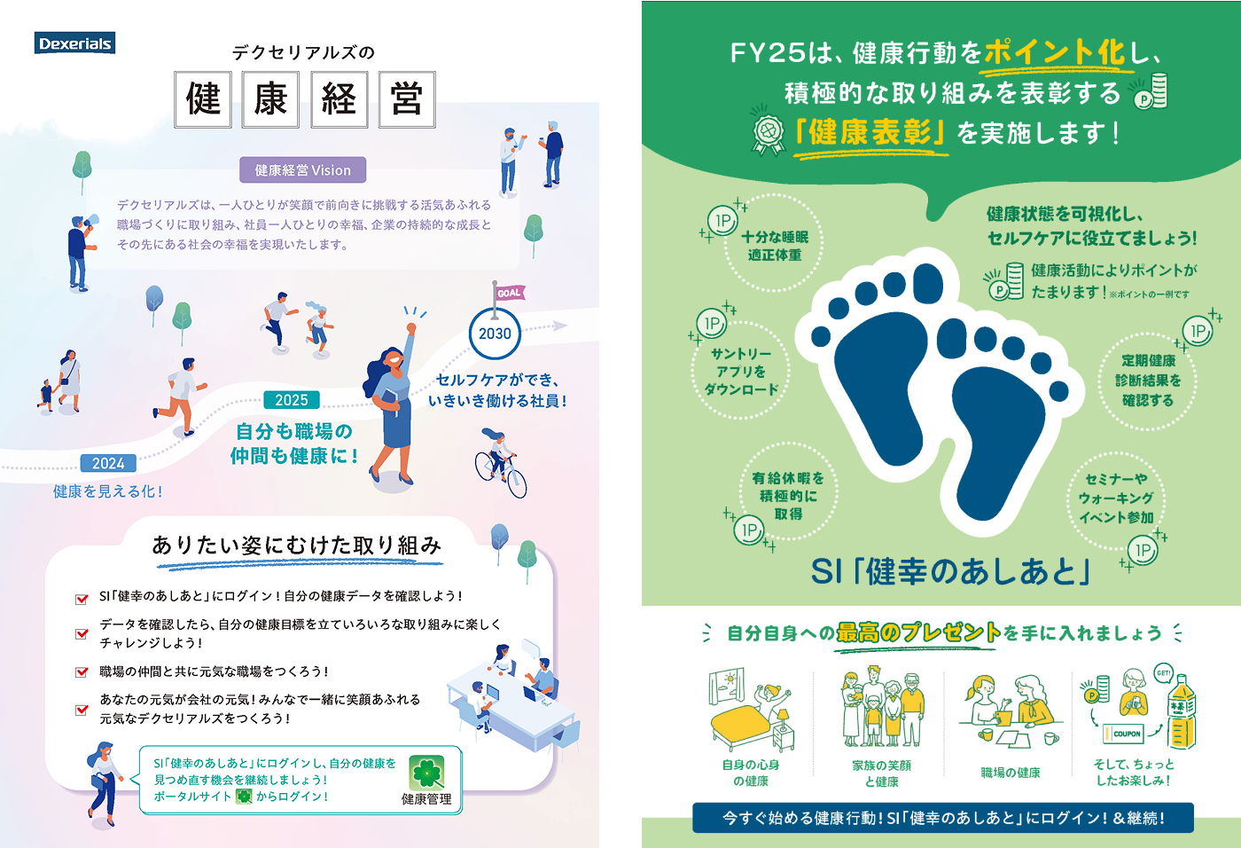 2024年度より、 健康経営周知と健康可視化に向けた社内開発アプリケーション「健幸のあしあと」を全社員へ展開しました。